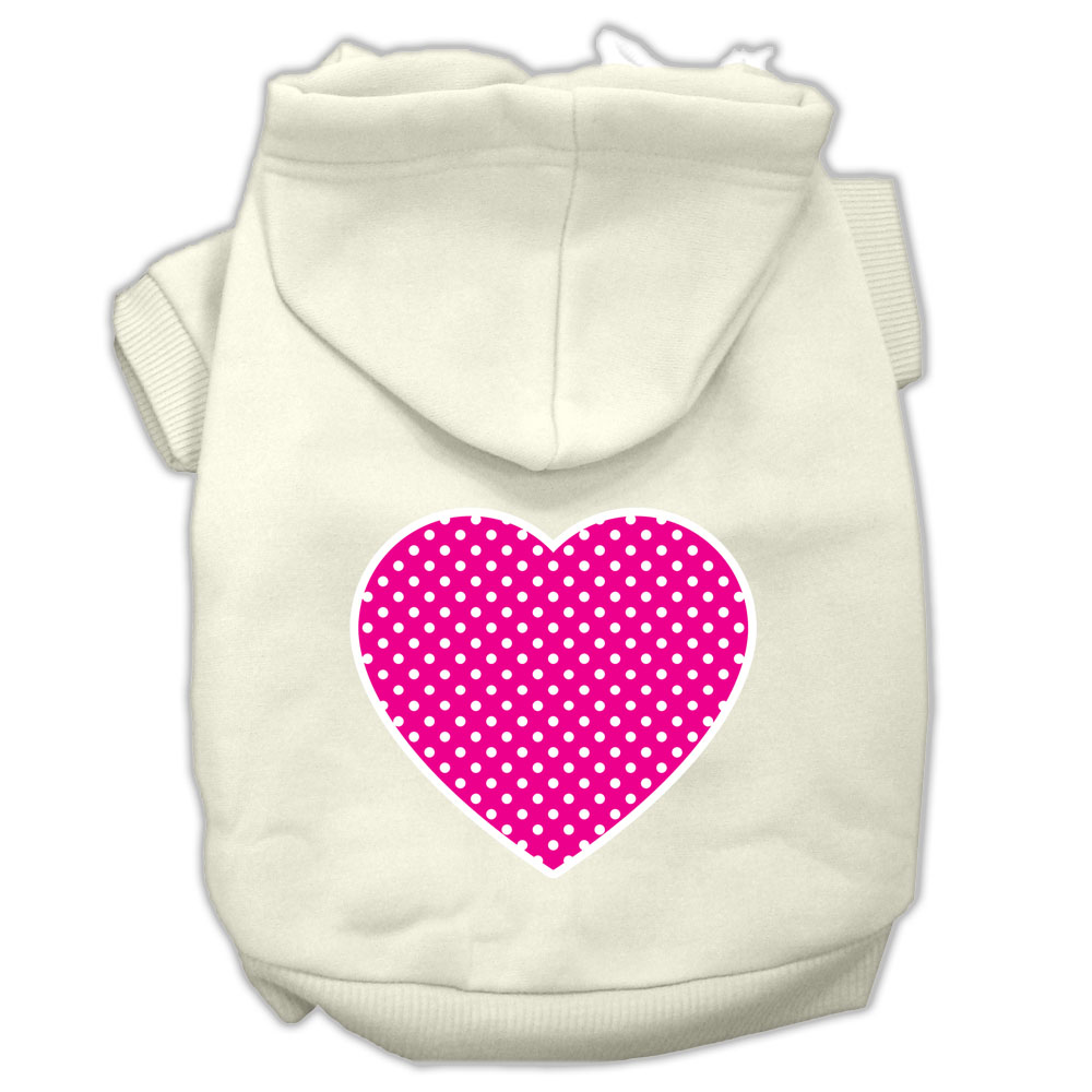 Mirage Pet 62-101 XLCR Pink Swiss Dot Heart Screen Print Pet Hoodie, Cream - Extra Large