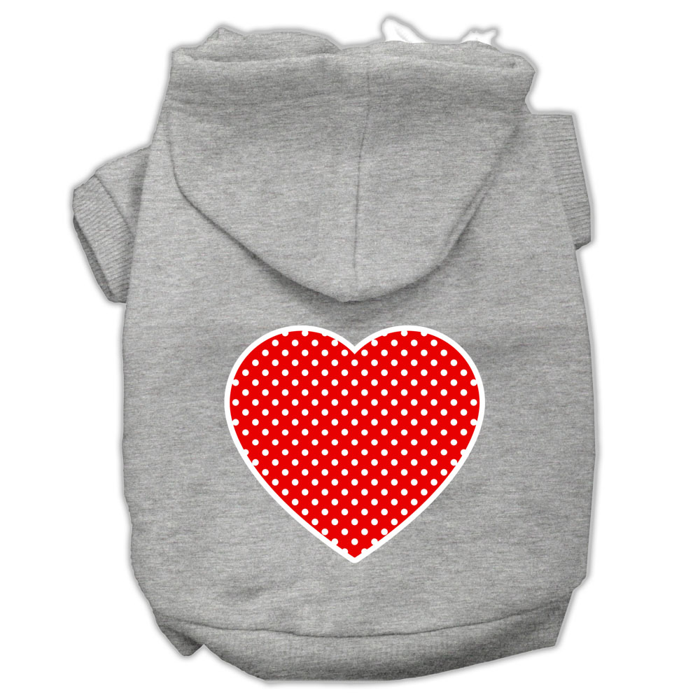 Mirage Pet Products 12" Red Swiss Dot Heart Screen Print Pet Hoodie, Medium, Grey