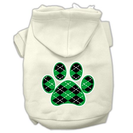 Mirage Pet Products 10" Argyle Paw Green Screen Print Pet Hoodie, Small, Cream