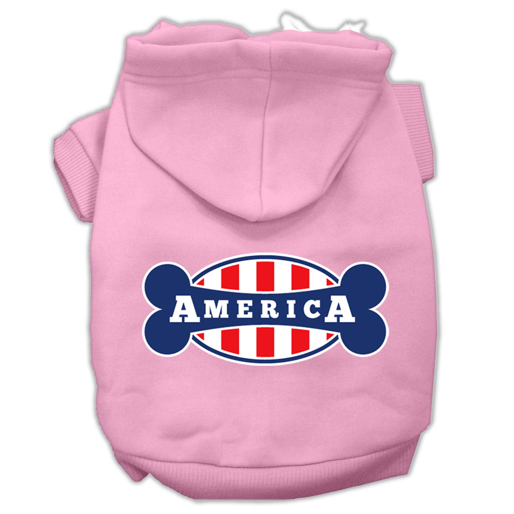 Mirage Pet 62-135 MDLPK Bonely in America Screen Print Pet Hoodies, Light Pink - Medium