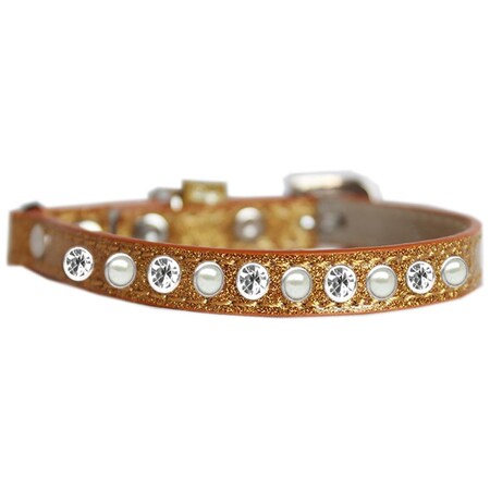 Mirage Pet Products Pearl and Clear Jewel Ice Cream Cat Safety Collar Gold Size 14
