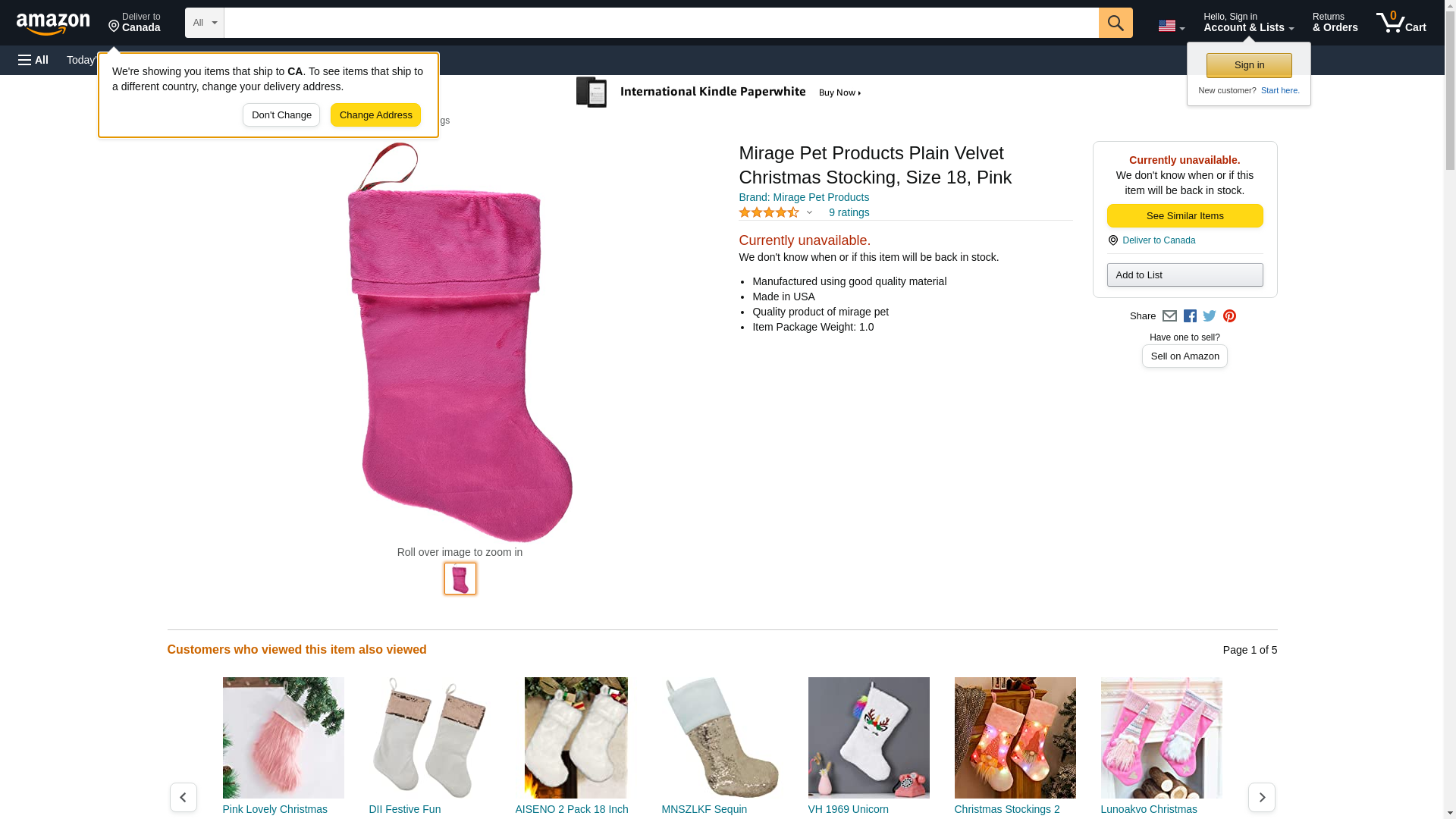 Mirage Pet Products Plain Velvet Christmas Stocking, Size 18, Pink