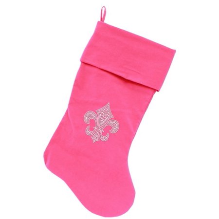 Mirage Pet Products Fleur De Lis Rhinestone Velvet Christmas Stocking, Size 18, Pink/Silver