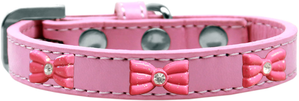 Mirage Pet Products 631-11 LPK10 Pink Glitter Bow Widget Dog Collar Light Pink, Size 10