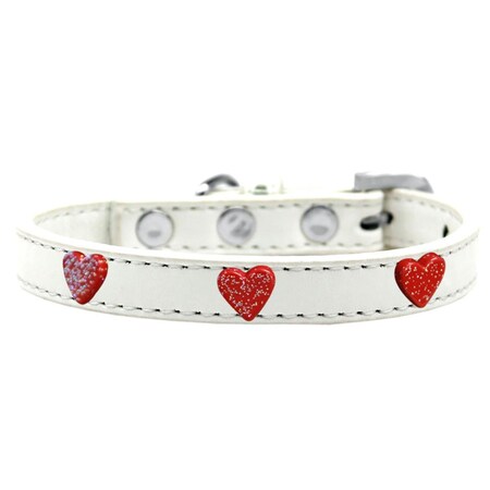 Mirage Pet 631-12 WT16 Red Glitter Heart Widget Dog Collar, White - Size 16