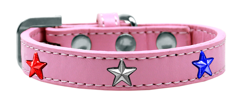 Mirage Pet 631-34 LPK10 Red, White & Blue Stars Widget Dog Collar, Light Pink - Size 10