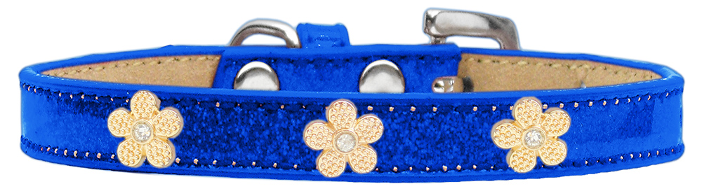 Gold Flower Widget Dog Collar Blue Ice Cream Size 18