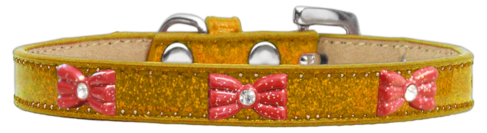 Mirage Pet Products Glitter Bow Widget Dog Collar, Size 20, Gold/Red