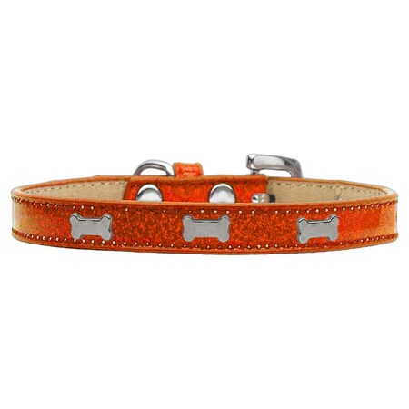 Mirage Pet Products Bone Widget Dog Collar, Size 18, Orange/Silver