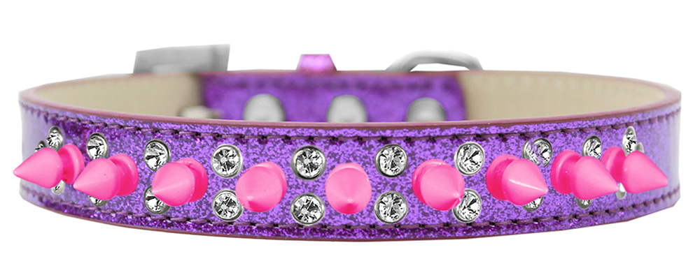 Mirage Pet Products Double Crystal and Bright Pink Spikes Dog Collar Purple, Ice Cream, Size 18