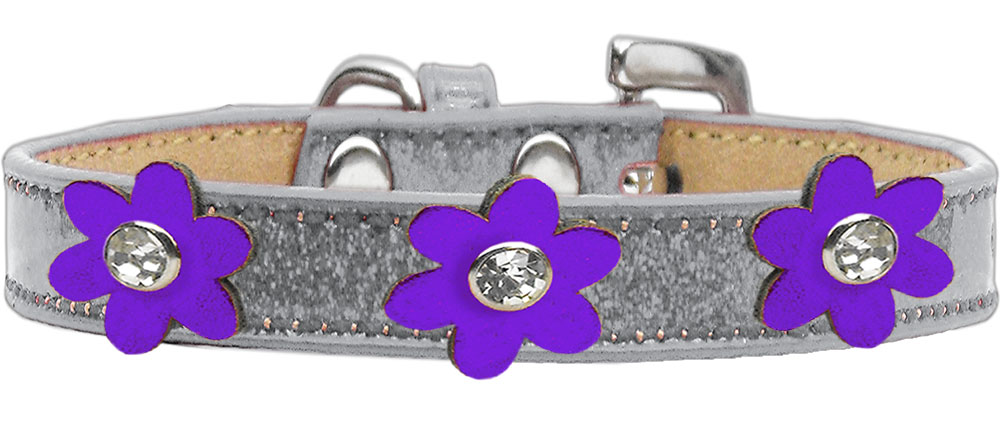 Mirage Pet Products Metallic Flower Ice Cream Collar Silver with Metallic Purple Flowers Size 18