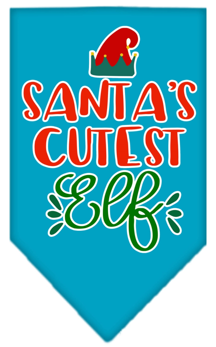 Mirage Pet 66-408 SMTQ Santas Cutest Elf Screen Print Bandana, Turquoise - Small