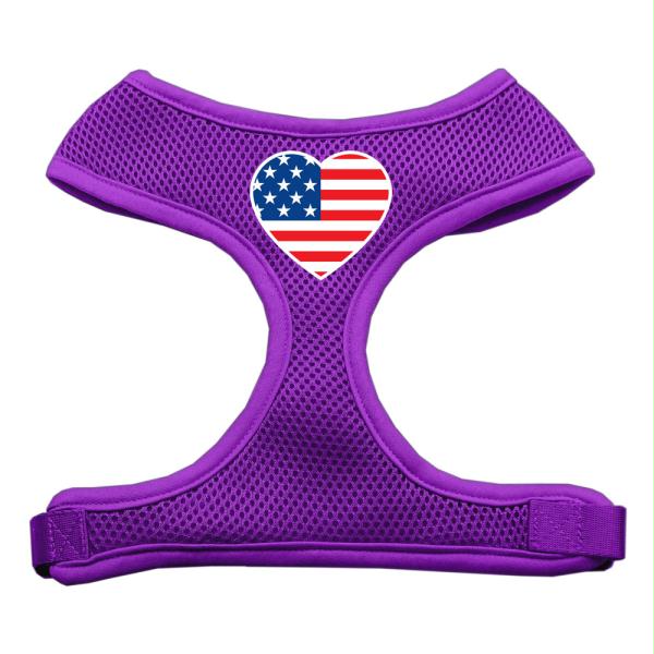 Mirage Pet Products Heart Flag USA Screen Print Soft Mesh Dog Harnesses, Medium, Purple
