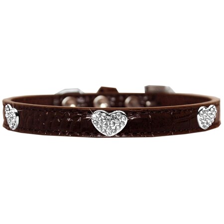 Mirage Pet 720-11 CHC16 Croc Crystal Heart Dog Collar, Chocolate - Size 16