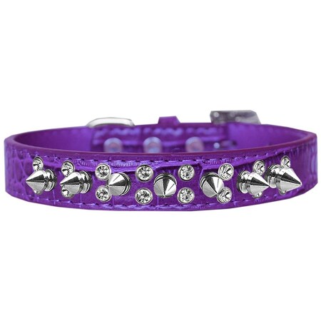 Mirage Pet 720-18 PRC18 Double Crystal & Spike Croc Dog Collar, Purple - Size 18