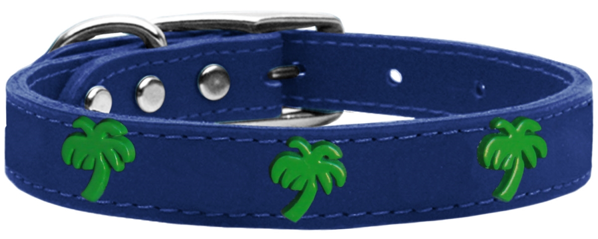 Mirage Pet Products 83-103 BL24 Green Palm Tree Widget Genuine Leather Dog Collar, Size 24, Blue