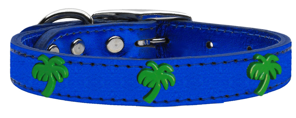 Mirage Pet Products 83-108 BLM10 Green Palm Tree Widget Genuine Metallic Leather Dog Collar, Size 10, Blue