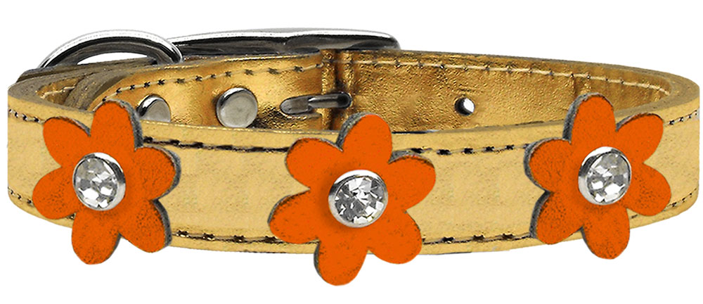 Mirage Pet Products Metallic Flower Leather Dog Collar Gold with Metallic Orange Flowers Size 24