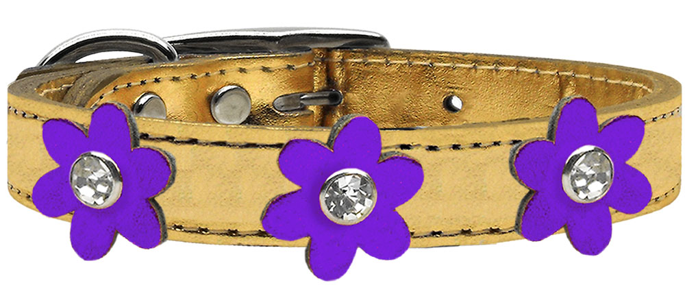 Mirage Pet Product Metallic Flower Leather Collar Gold with Metallic Purple Flowers Size 24