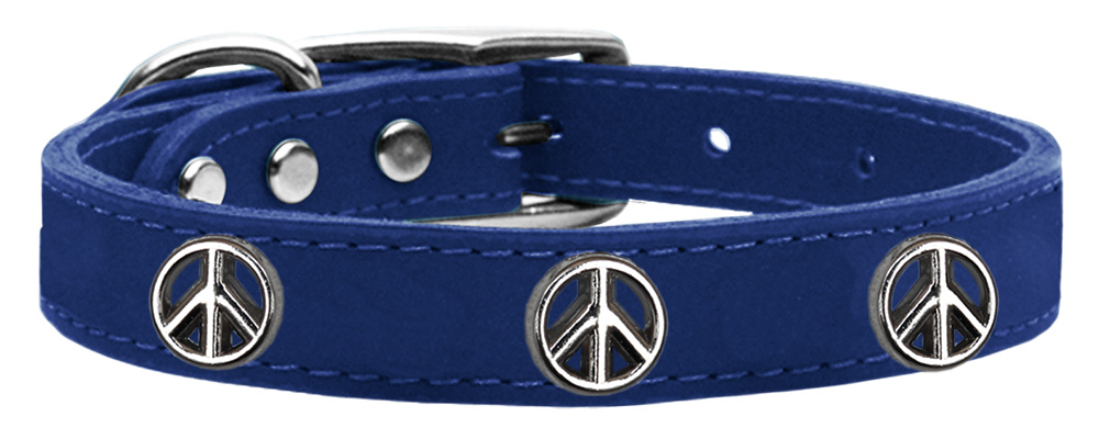 Mirage Pet Products Peace Sign Widget Genuine Leather Dog Collar Blue 22