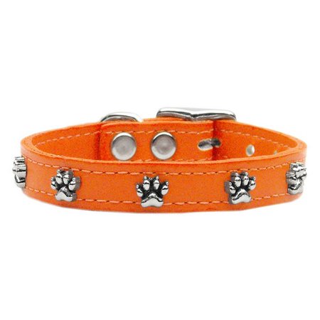 Mirage Pet Products Paw Leather Orange Dog Collar, 18"