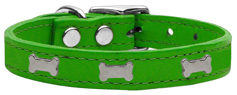 Mirage Pet Products Bone Widget Genuine Leather Dog Collar, Size 24, Emerald Green/Silver