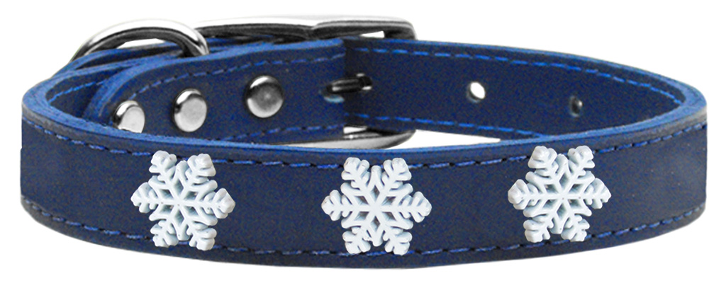 Mirage Pet Products Snowflake Widget Genuine Leather Dog Collar, Size 24, Blue