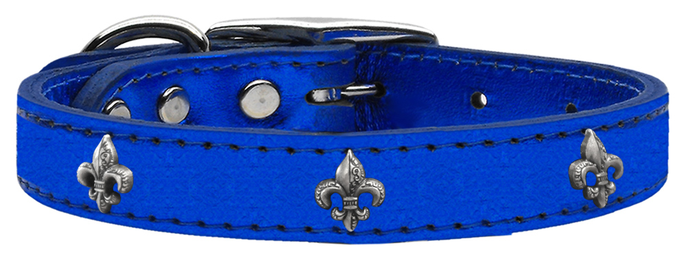 Mirage Pet Products Fleur De Lis Widget Genuine Metallic Leather Dog Collar, Size 16, Blue/Silver