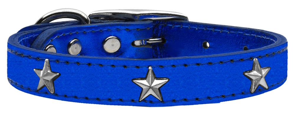 Mirage Pet Products Star Widget Genuine Metallic Leather Dog Collar, Size 24, Blue/Silver