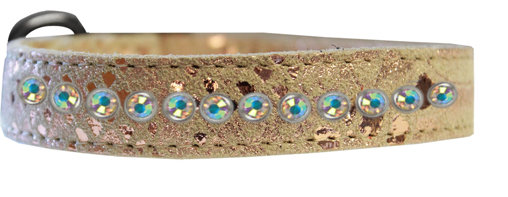 Mirage Pet Products One Row AB Crystal Jeweled Dragon Skin Genuine Leather Dog Collar Golden size 10
