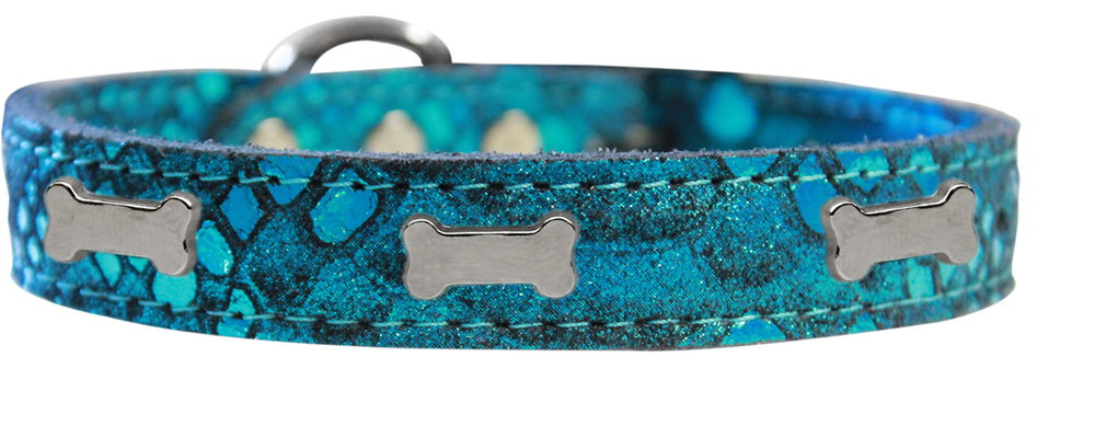 Mirage Pet Products 83-96 BL24 Silver Bone Widget Dragon Skin Genuine Leather Dog Collar, Size 24, Blue