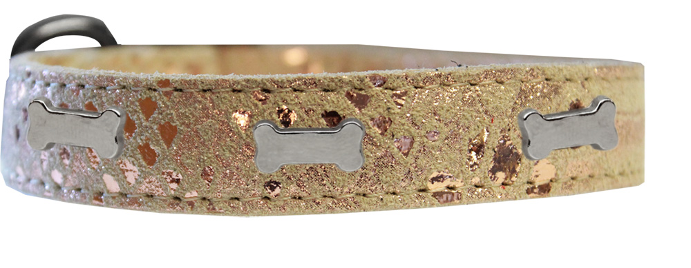 Mirage Pet Products 83-96 GD16 Silver Bone Widget Dragon Skin Genuine Leather Dog Collar, Size 16, Golden
