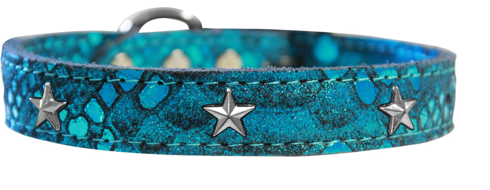 Mirage Pet Products 83-98 BL24 Silver Star Widget Dragon Skin Genuine Leather Dog Collar, Size 24, Blue