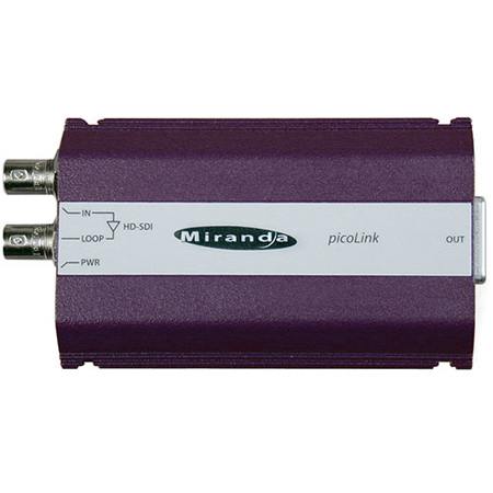 The Miranda SDM-874p is a miniature digital video interface converting HD/SD video signal to Digital RGB (DVI-HDTV). It provides automatic input scan rate detection and supports a wide variety of input formats (525i, 625i, 720p, 1080i, 1080p). The primary application is to convert SD/HD serial to Digital RGB for the purposes of feeding a DVI-HDTV display or a projector (CRT, LCD, Plasma, DLP, D-ILA etc). In order to support the emerging popularity of 24p equipment and digital display, the SDM-874p outputs DVI-D with selectable 3:2 sequence insertion. In addition, the SDM-874p is compatible with any 1920x1200 native resolution displays including the Apple HD Cinema Display.</p>