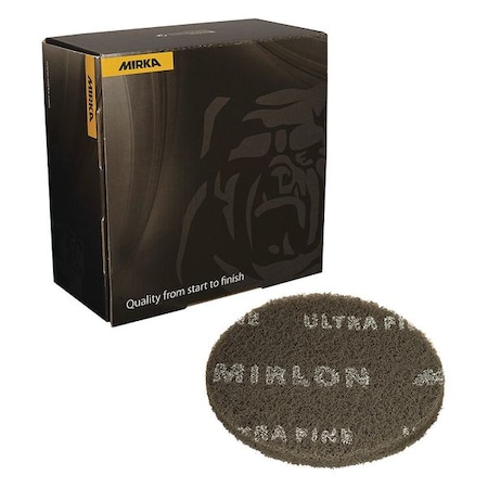 Mirka MirlonTotal 18-241-448, 6" Ultra Fine (Gray) Scuff Pad, 1500 gritBox of 10 Mirlon is a flexible, three-dimensional fibre sanding material that provides an excellent surface finish. Due to its special structure, Mirlon is easy to use on profiled surfaces and creates an excellent base for the next lacquer layer. Mirlon is available in four different coarse grits. Ultra Fine (1500) and Micro Fine (2000) are suitable for - preparation of lacquered surfaces - fading Grain: Aluminium oxide (GP, VF), Bonding: Silicon carbide (UF, MF) Coating: Phenolic resin Colour: Green (GP), Red (VF), Dark grey (UF), Grey (MF) Grit range: GP 320, VF 360, UF 1500, MF 2000