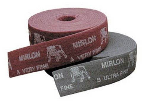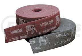 Mirka Mirlon 4 in. x 33 Fine Scuff Roll (Maroon), Qty. 1 Mirlon Mirlon is a flexible, three-dimensional fibre sanding material that provides an excellent surface finish. Due to its special structure, Mirlon is easy to use on profiled surfaces and creates an excellent base for the next lacquer layer. Mirlon is available in four different coarse grits. * General Purpose (320) is a universal sanding material * Very Fine (360) is recommended for - primary sanding of new sheet parts and old lacquer layers - sanding of blendings before applying the primer * Ultra Fine (1500) and Micro Fine (2000) are suitable for - preparation of lacquered surfaces - fading Technical specifications: Grain Aluminium oxide (GP, VF), Bonding Silicon carbide (UF, MF) Coating Phenolic resin Colour Green (GP), Red (VF), Dark grey (UF), Grey (MF) Grit range GP 320, VF 360, UF 1500, MF 2000