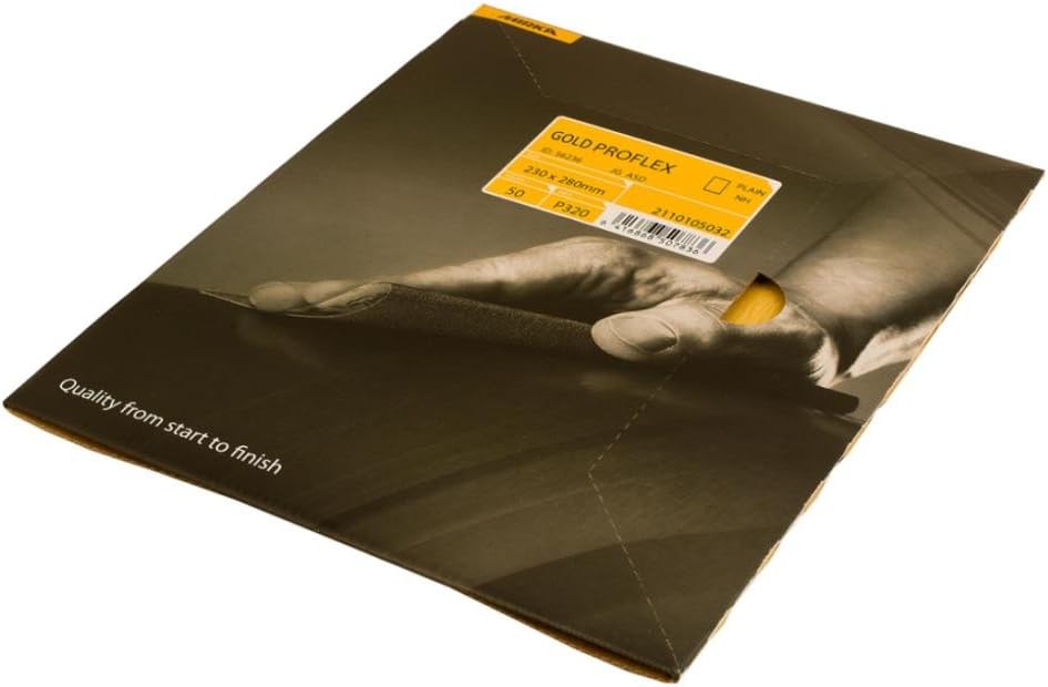 Mirka 23-104-120 Bulldog Goldflex 9 in. x 11 in. Sheet 120G, Qty. 50 Goldflex is suitable for sanding profiled surfaces. Mirka Goldflex is a light, flexible latex paper suited for both dry and wet sanding. The special stearate coating prevents clogging and pill forming. SUITED FOR: Automotive Refinishing Wood Processing Metal Processing Marine Industry