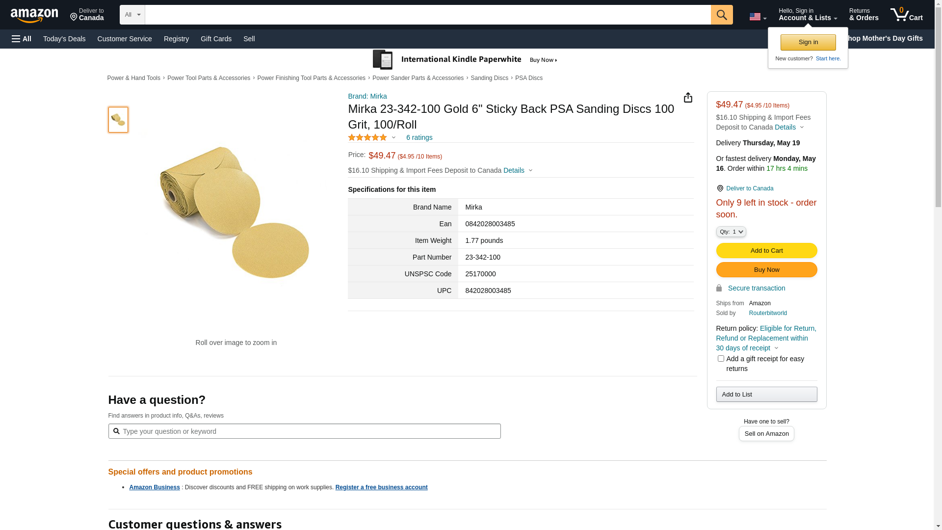 - Mirka 23 Series Gold 6" PSA Linkrol Disc, 100-Grit, D-Weight Backing
