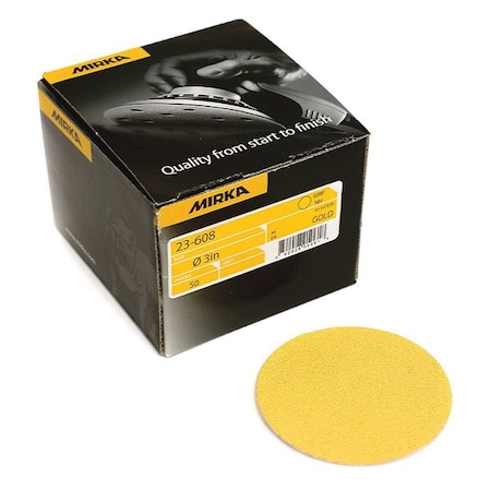 Mirka Bulldog Gold 3" Hook and Loop Sanding Disc, Pack of 50This durable sanding material is well suited for high speed sanding in a multitude of applications. Gold features semi-open and special stearate coatings designed to prevent clogging and pill forming which helps achieve an optimal sanding result. This makes Gold the TRUE standard.Features: 400 Grit: Mirka 23-608-4003" Diameter Hook and Loop DiscsPack of 50Aluminum oxideClosed coatResin over resin bond P80-P150 D-Weight latex paper; P180-P800 C-weight latex paper Designed for both finishing and heavy stock removal The Gold standard of abrasive paper. Used throughout the world. Mirka is a world-renowned manufacturer of abrasive products. They have a full product line suitable for the hobbyist to professional, and have pioneered many revolutionary, patented products. Some of their products lines are Abranet, Abralon, Mirlon and Bulldog Gold. Whether your application includes the woodworking, automotive, marine or metalworking industry, Mirka has products to suit your needs.