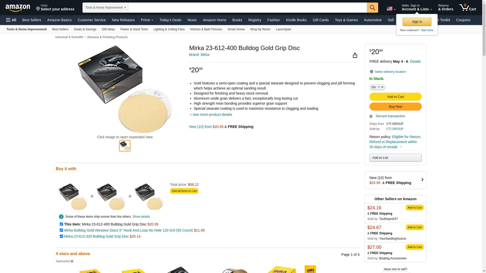 <br>Mirka Bulldog Gold 5" Hook and Loop Sanding Disc, Pack of 50<br><br>This durable sanding material is well suited for high speed sanding in a multitude of applications. Gold features semi-open and special stearate coatings designed to prevent clogging and pill forming which helps achieve an optimal sanding result. This makes Gold the TRUE standard.<br>Features: <br><br><br>400 Grit: Mirka 23-612-400<br><br>5" Diameter Hook and Loop Discs<br><br>Pack of 50<br><br>Aluminum oxide<br><br>Closed coat<br><br>Resin over resin bond <br><br>P80-P150 D-Weight latex paper; P180-P800 C-weight latex paper <br><br>Designed for both finishing and heavy stock removal <br><br>The Gold standard of abrasive paper. Used throughout the world. <br><br><br>Mirka is a world-renowned manufacturer of abrasive products. They have a full product line suitable for the hobbyist to professional, and have pioneered many revolutionary, patented products. Some of their products lines are Abranet, Abralon, Mirlon and Bulldog Gold. Whether your application includes the woodworking, automotive, marine or metalworking industry, Mirka has products to suit your needs.<br>