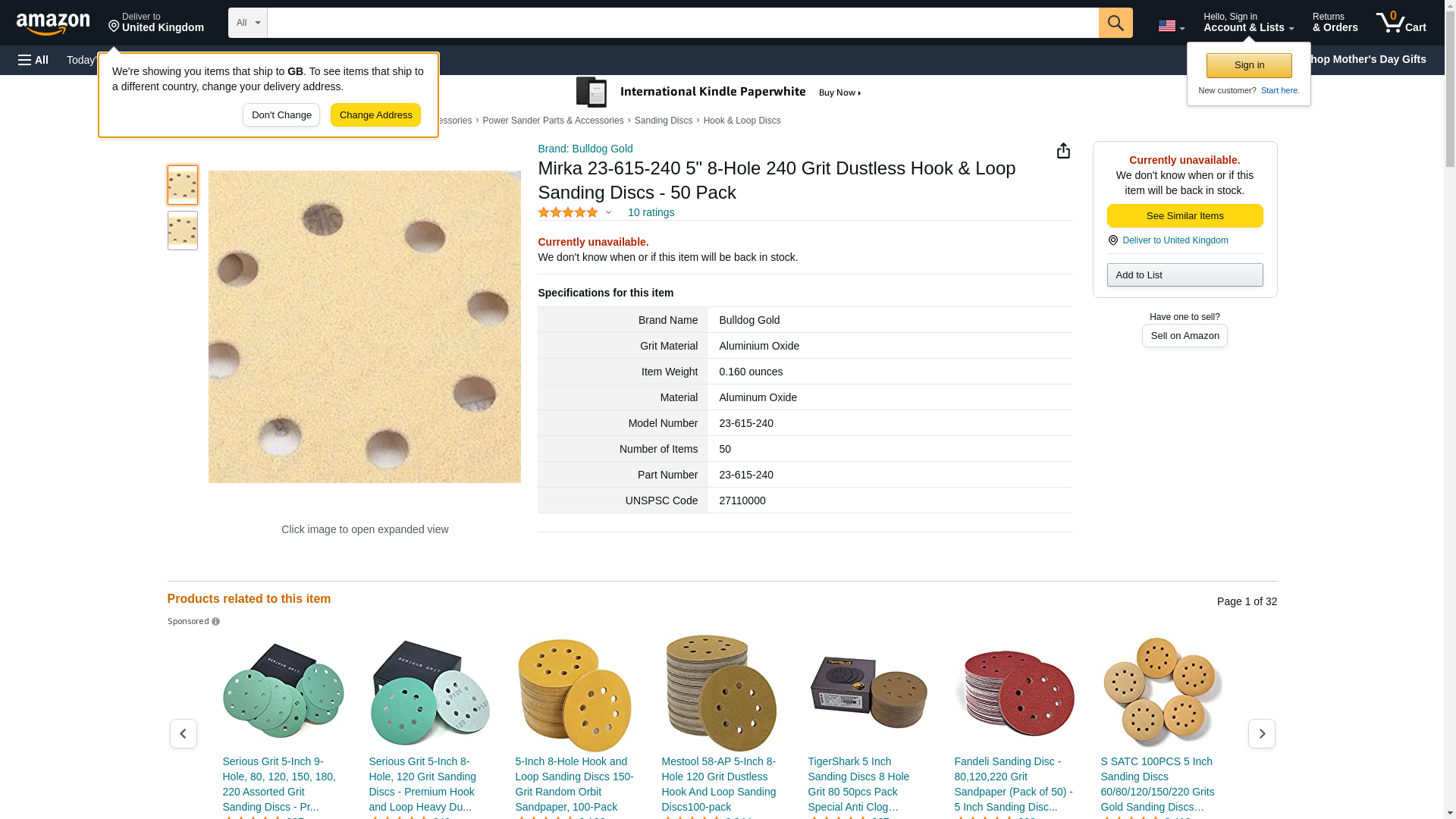Mirka Gold 5 inch Sandpaper Discs / 8-Hole / 240-Grit / 50-Pack/Dustless Hook and Loop Sanding / 23-615-240