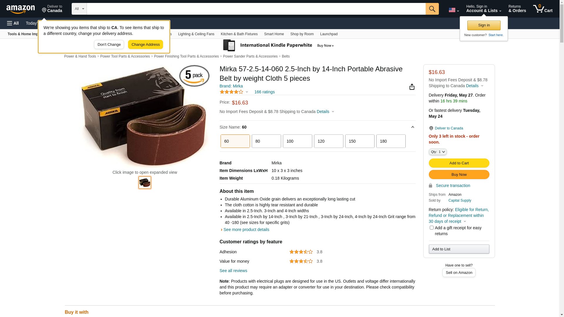 Sanding Belt,2.5 In.x14 In.,P60,PK5, Package Quantity 5