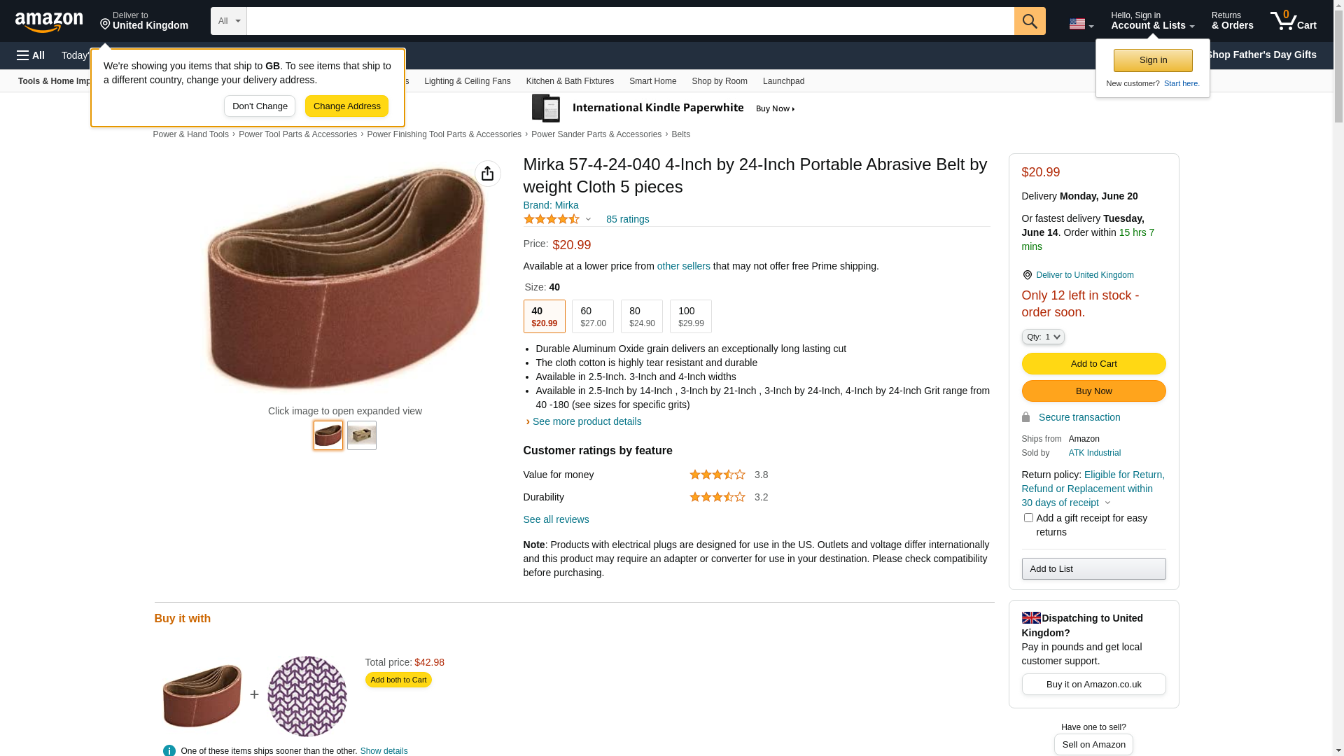 Mirka 57-4-24-150 4-Inch by 24-Inch Portable Abrasive Belt by weight Cloth 10 pieces