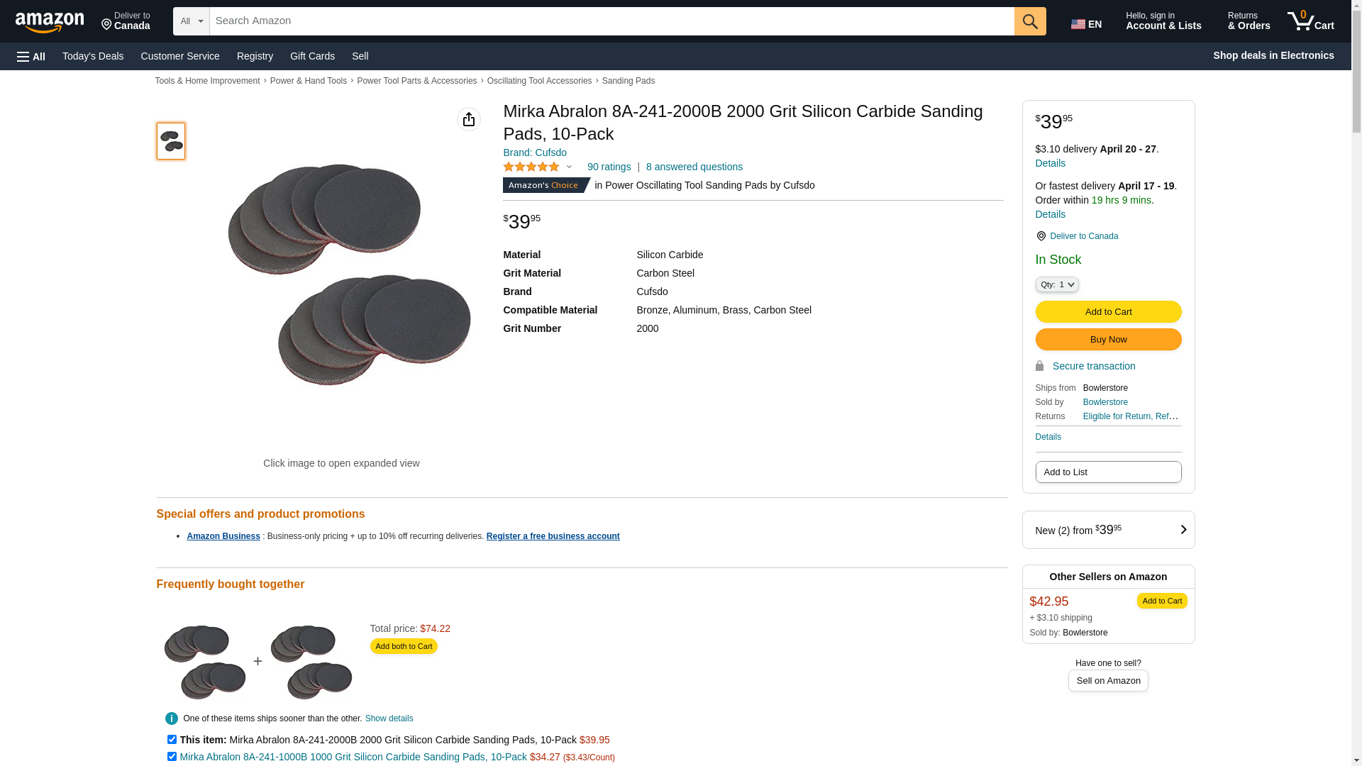 8A-241-2000B 2000 Grit Silicon Carbide Sanding Pads, 10-Pack