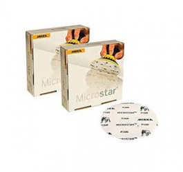 This new abrasive film product, Microstar, is designed for mattening and paint rectification of top- and clear coat applications. Microstar has a special stearate layer and a smooth film backing. This product has a high quality finish and lasts longer as it doesn’t clog as easily as traditional products. Microstar produces a fine scratch pattern that is easy to polish out. For a perfect result, it is recommended to use Microstar with a 5 mm interface pad. Microstar is developed for dry sanding only. Suited for: Automotive Refinishing Wood Processing Composites Processing Marine Industry Vehicles Manufacturing Available as: Discs Narrow Belts Specifications: Bonding Low VOC resin system Grain Aluminium oxide Coating Semi-open Color White Grit range P800, 1000, 1200, 1500, 2000, 2500 Backing Polyester film