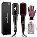 Enhanced Ceramic Hair Straightener Brush by MiroPure, 2-in-1 Ionic Straightening Brush with Anti-Scald Feature, Auto Temperature Lock & Auto-Off Function (Black)
