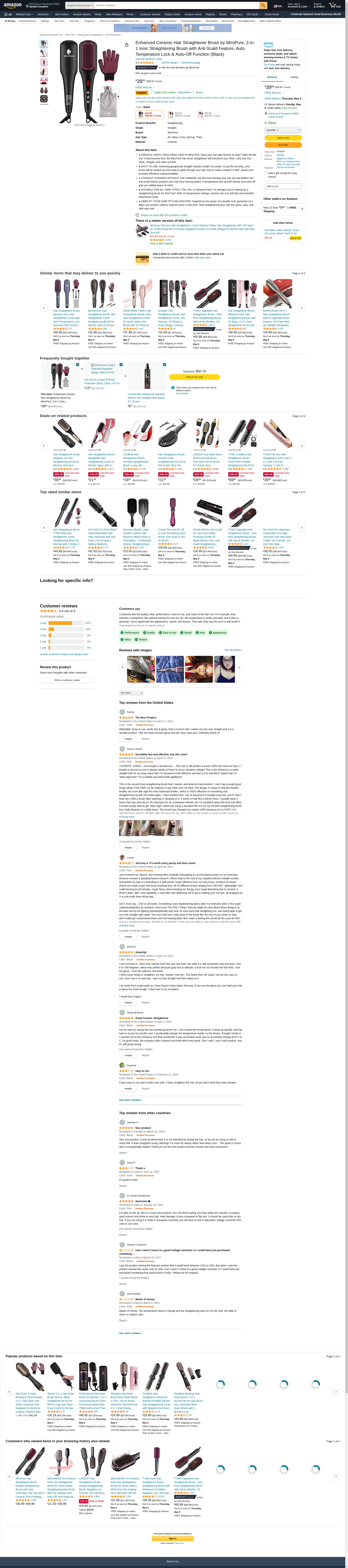 Enhanced Hair Straightener Brush by MiroPure, 2-in-1 Ionic Straightening Brush with Anti-Scald Feature, Auto Temperature Lock & Auto-Off Function (Black): Maxedbuy.com