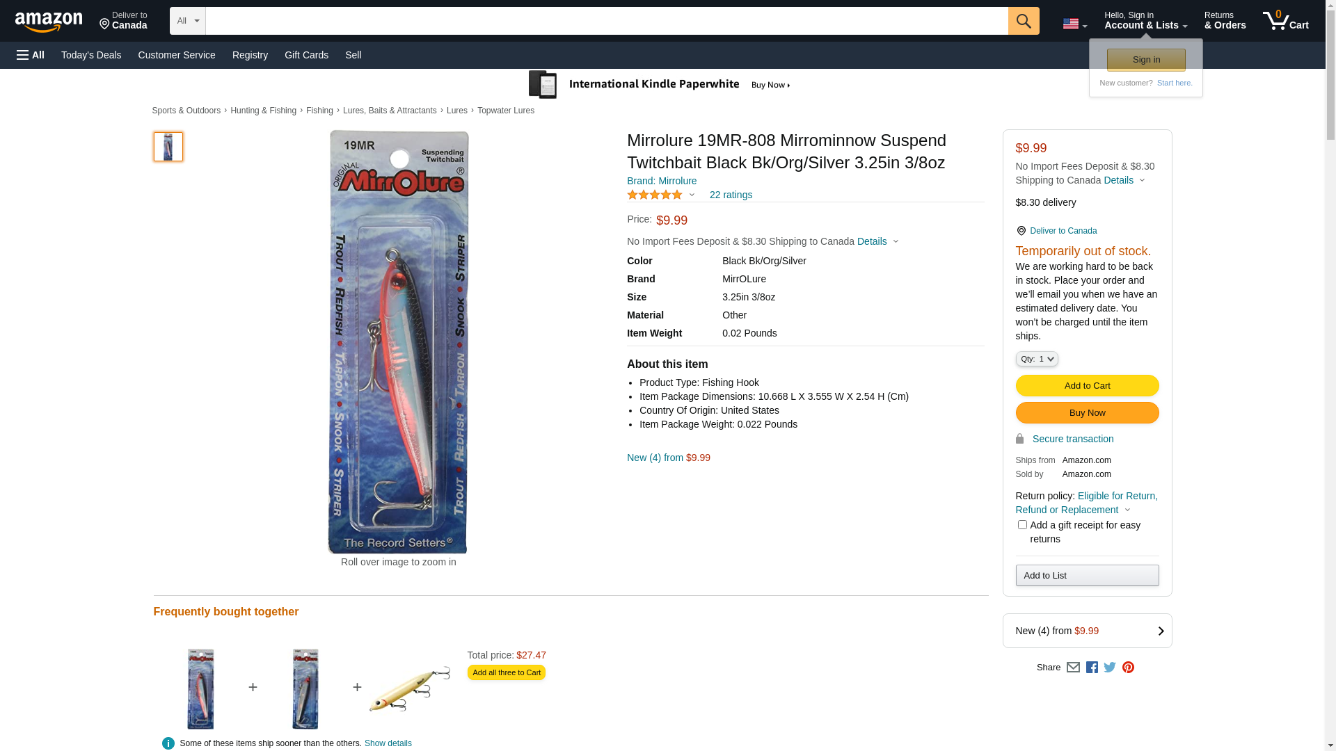 Mirrolure 19MR-808 Mirrominnow Suspend Twitchbait Black Bk/Org/Silver 3.25in 3/8oz