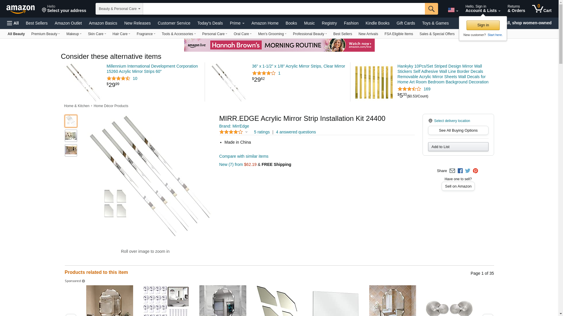 | Feature | Price For: Each Corner Shape: Square Height: 1/8" Finish: Mirror Depth: 1-1/2" Color: Clear Mirror Width: 1-1/2" Material: Acrylic Mirror Length: 48" Item: Mirror Installation Kit Country of Origin (subject to change): United States |