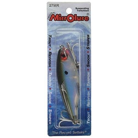 Arm your tackle box with the MirrOlure MirrOdine XL 27MR Suspending Jerk Bait that features a realistic baitfish pattern and a wide body to produce violent strikes. The two No. 4 treble hooks are strong to help you secure heavy fish, and the bright luminescent insert, fish-calling rattles and 3-D eyes add a realistic appearance. This bait is ideal for attracting redfish, trout, snook, striped bass and tarpon and casts far while maintaining good sink rate.